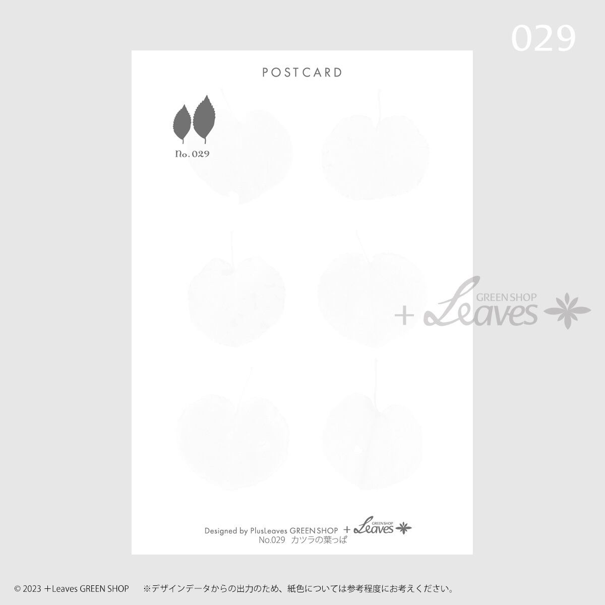 淡くて優しい色合いに変化したカツラ(桂)の葉っぱの色とかたちを楽しむポストカード。