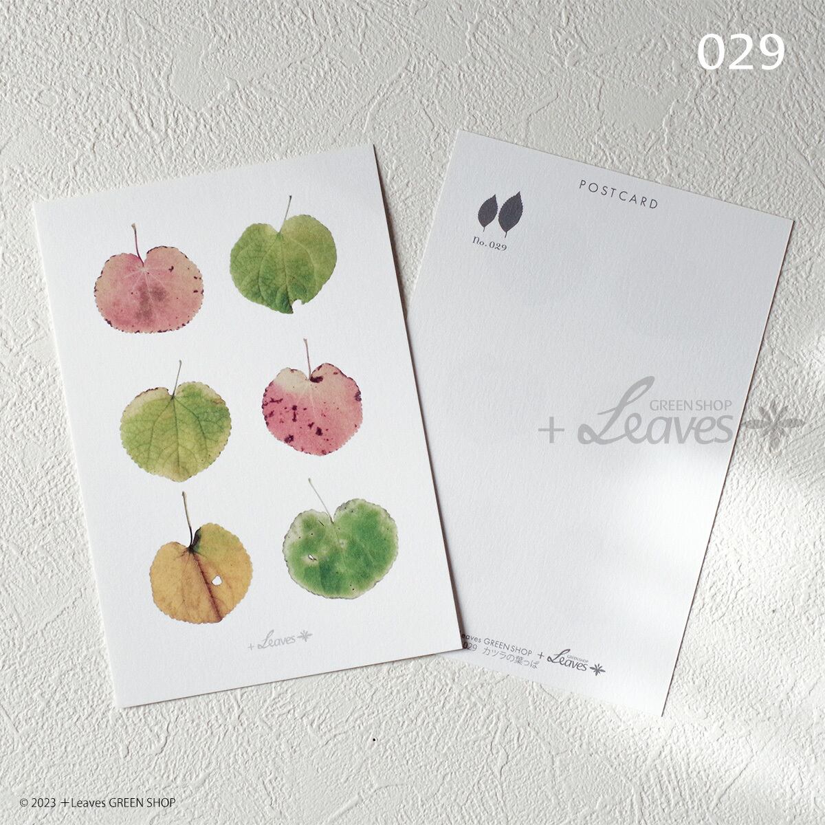 淡くて優しい色合いに変化したカツラ(桂)の葉っぱの、色とかたちを楽しむポストカード